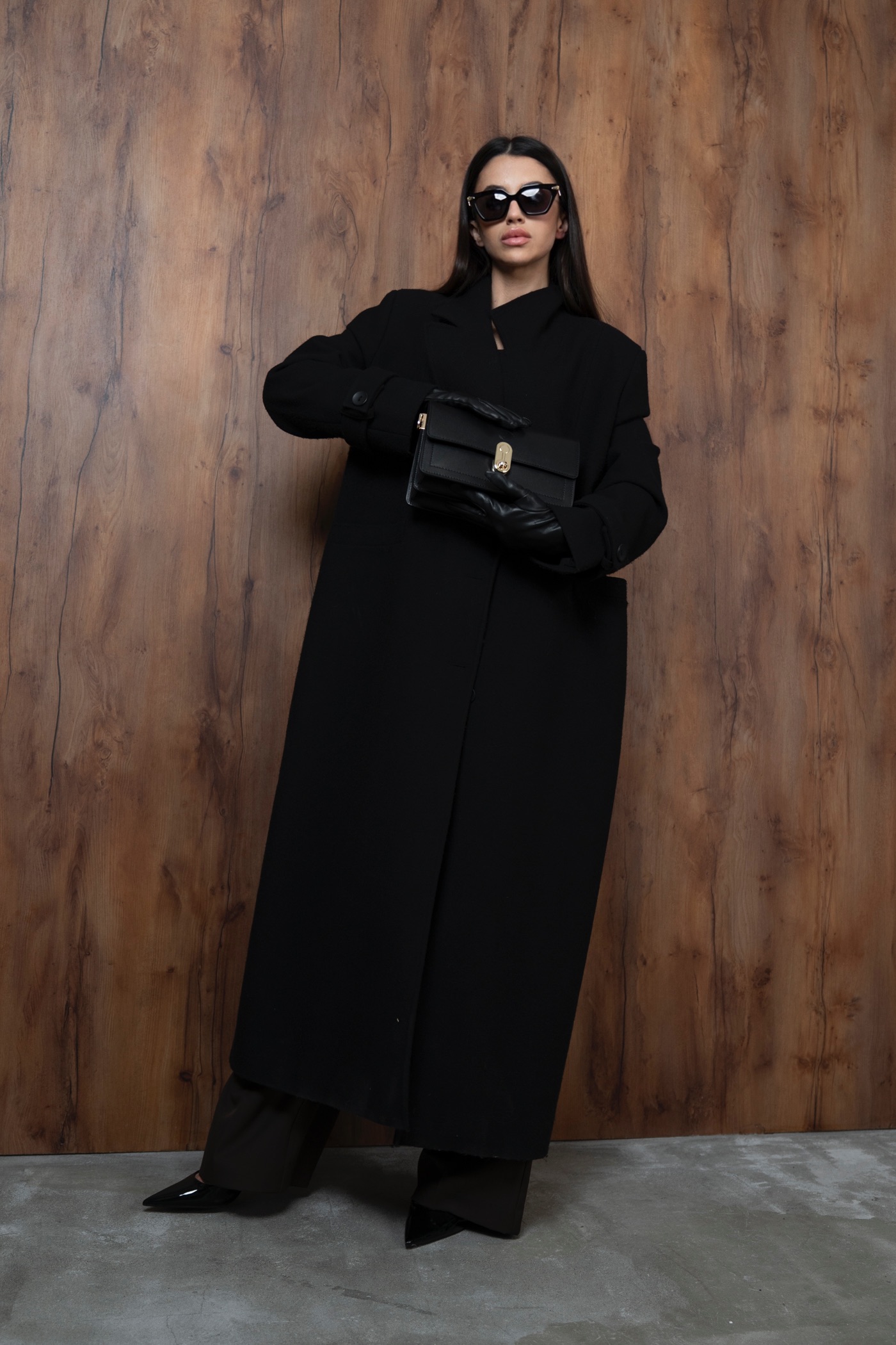 Elegancki płaszcz oversize w kolorze czarnym. Wykonany z wysokiej jakości materiału, idealny na chłodniejsze dni. Luźny, komfortowy krój, z klasycznym zapięciem na guziki. Pasuje do każdej stylizacji – zarówno casualowej, jak i eleganckiej. Must – have w Twojej szafie!