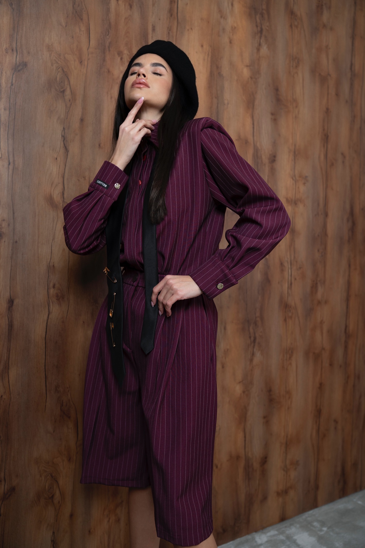 Nowoczesna elegancja w minimalistycznym wydaniu. Bordowa luźna koszula i szerokie bermudy tworzą stylizację pełną swobody, klasy i pewności siebie. Idealny wybór dla kobiet, które cenią wygodę i wyrafinowany styl.