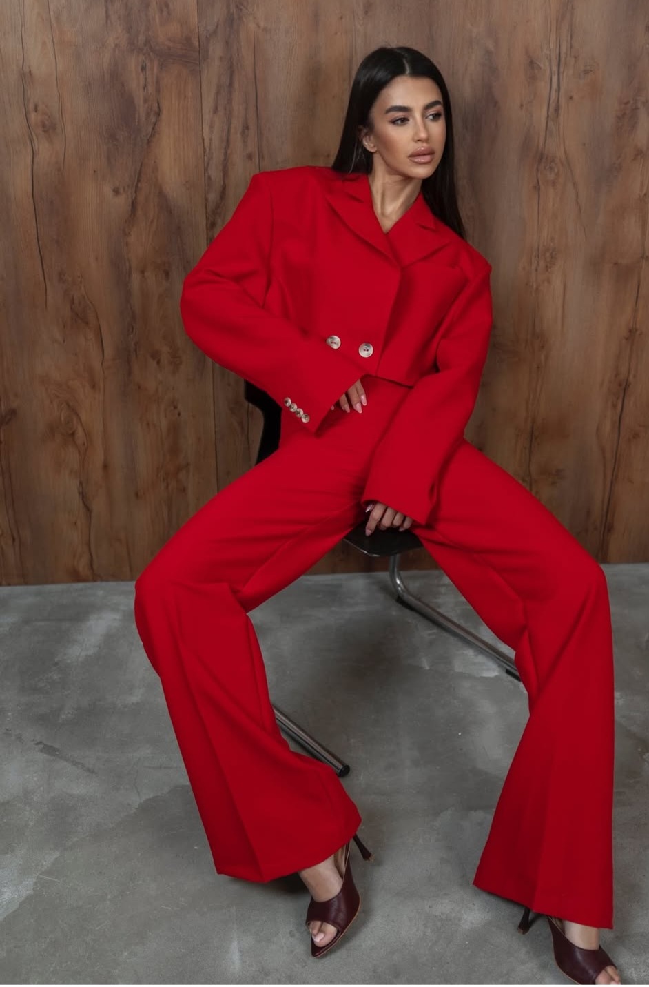 Czerwone spodnie z wysokim stanem i długim suwakiem z tyłu to kwintesencja współczesnej klasyki. Ich szeroka nogawka nadaje sylwetce lekkości i ponadczasowego szyku, a perfekcyjne wykończenie podkreśla dbałość o każdy detal. Idealne na co dzień i wyjątkowe okazje- dla kobiet, które kochają modę z charakterem.